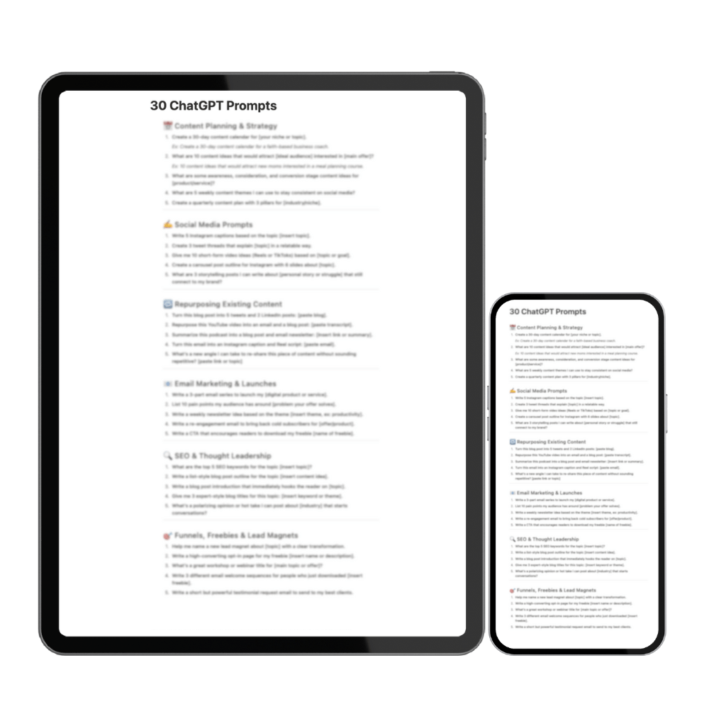 Struggling to come up with fresh content that actually drives results? This AI-powered prompt pack gives you 30 ready-to-use prompts designed to help you create, plan, and repurpose content across social media, email, funnels, and freebies—without the stress or guesswork.